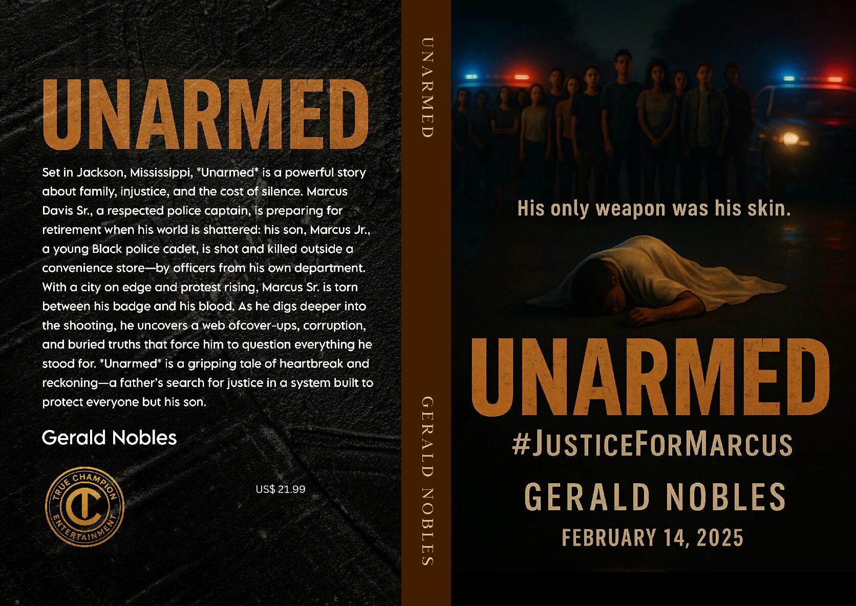 Set in Jackson, Mississippi, *Unarmed* is a powerful story about family, injustice, and the cost of silence. Marcus Davis Sr., a respected police captain, is preparing for retirement when his world is shattered: his son, Marcus Jr., a young Black police cadet, is shot and killed outside a convenience store-by officers from his own department. With a city on edge and protest rising, Marcus Sr. is torn between his badge and his blood. As he digs deeper into the shooting, he uncovers a web of cover-ups, corruption, and buried truths that force him to question everything he stood for. *Unarmed* is a gripping tale of heartbreak and reckoning-a father’s search for justice in a system built to protect everyone but his son.